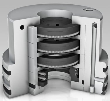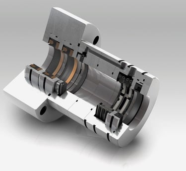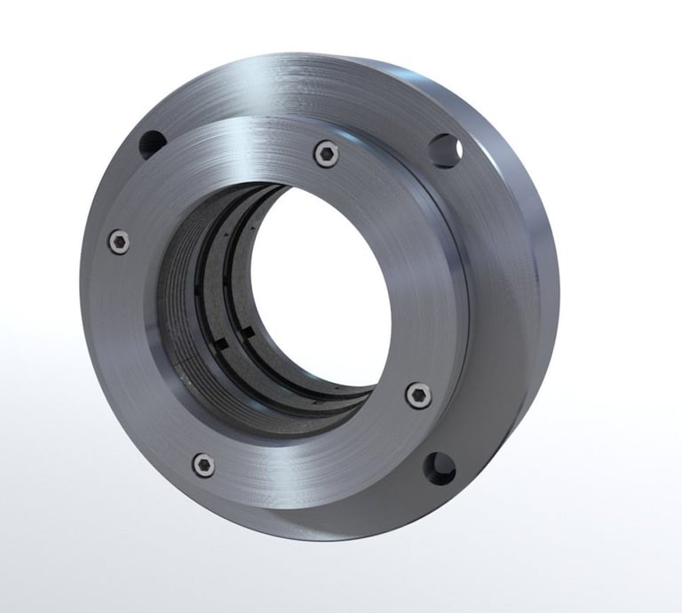 The individual packing cups are assembled in a packing casing, which also includes the gas-tight cooling circuit. To keep the installation space of the entire unit as small as possible, the sealing cartridge is installed directly in the cylinder head without a separate packing flange. Three of the patented STASSKOL single sealing rings are combined with a pressure breaker ring. Complemented by the PTFE material specially developed for air operation, this design guarantees an outstanding service life.